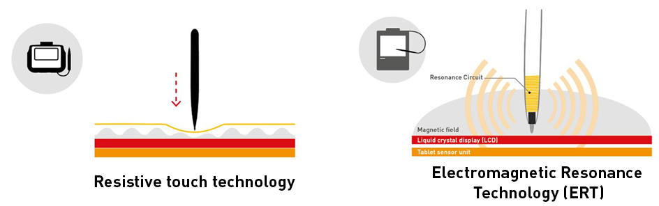 Thiết bị ký điện tử Evolis sử dụng công nghệ điện trở (chữ ký được chụp bằng bút stylus hoặc ngón tay) hoặc công nghệ ERT (pad chỉ phản ứng với bút stylus).