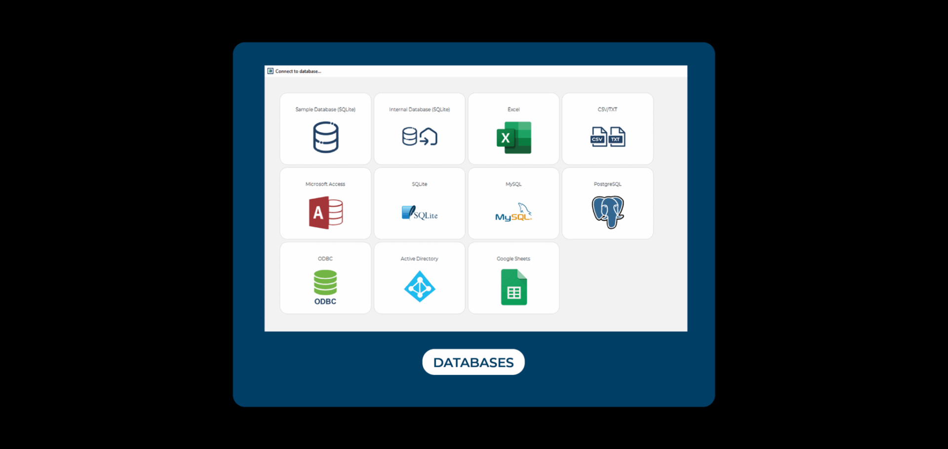 Kết nối với cơ sở dữ liệu chuyên nghiệp: đối với các tổ chức sử dụng hệ thống mạnh mẽ hơn, phần mềm hỗ trợ MySQL, PostgreSQL, SQL Server, Oracle, Active Directory (qua plug-in) cũng như kết nối ODBC.