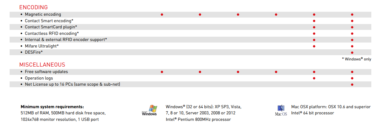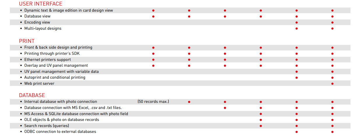 Thông số kĩ thuật của phần mềm in thẻ Cardpresso XS:
