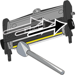 18 - Nhẹ nhàng chà đầu của que tăm bông vệ sinh / bút vệ sinh từ trái sang phải qua đầu in (được đánh dấu bên dưới) vài lần, cho đến khi đầu vệ sinh không còn lấy đi bụi bẩn nào nữa: